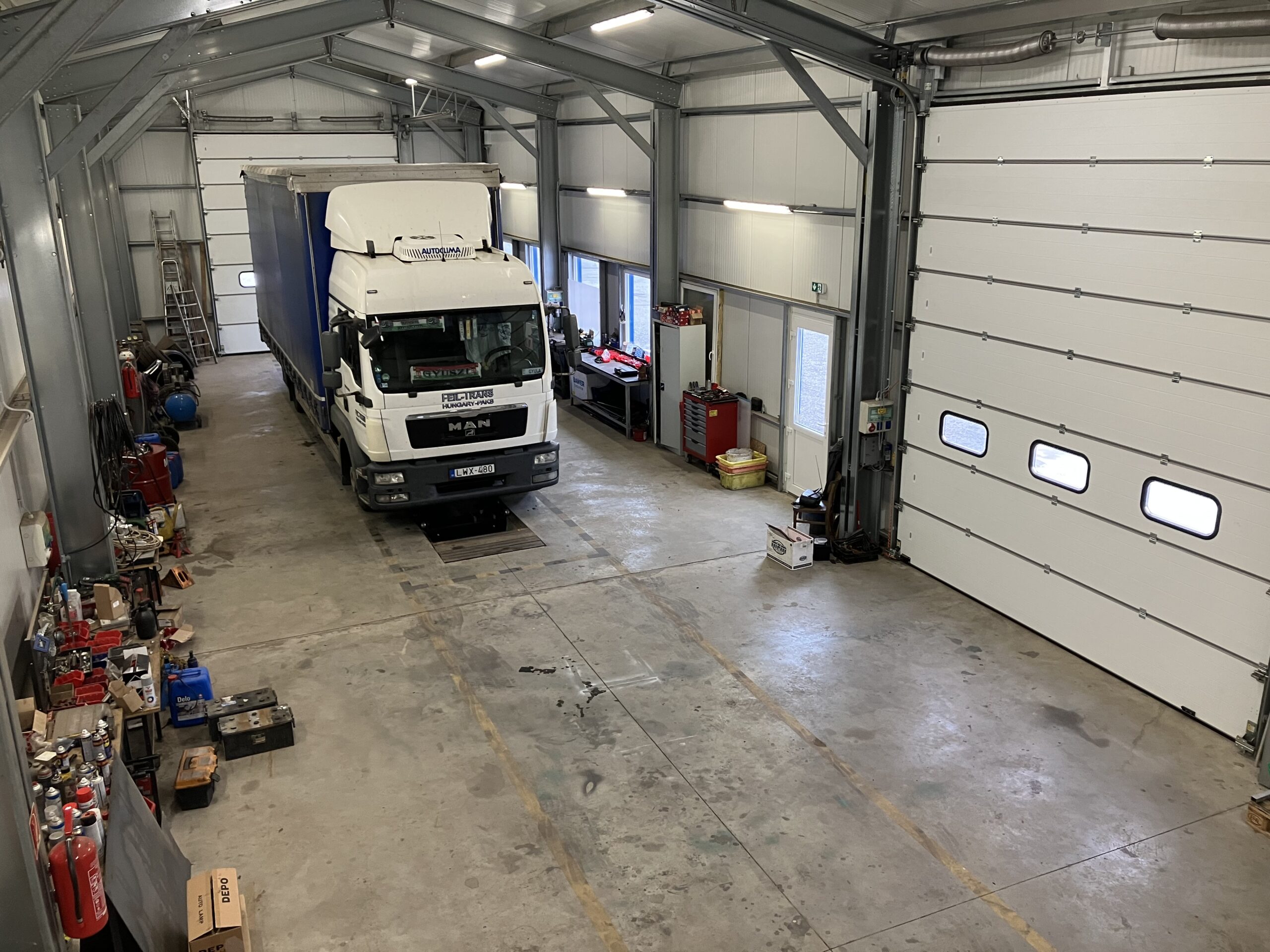 Saját szervizháttér: Járműveink műszaki állapotát saját, 2019-ben épült, korszerűen felszerelt telephelyi műhelyünkben tartjuk karban, garantálva a folyamatos üzembiztonságot.
